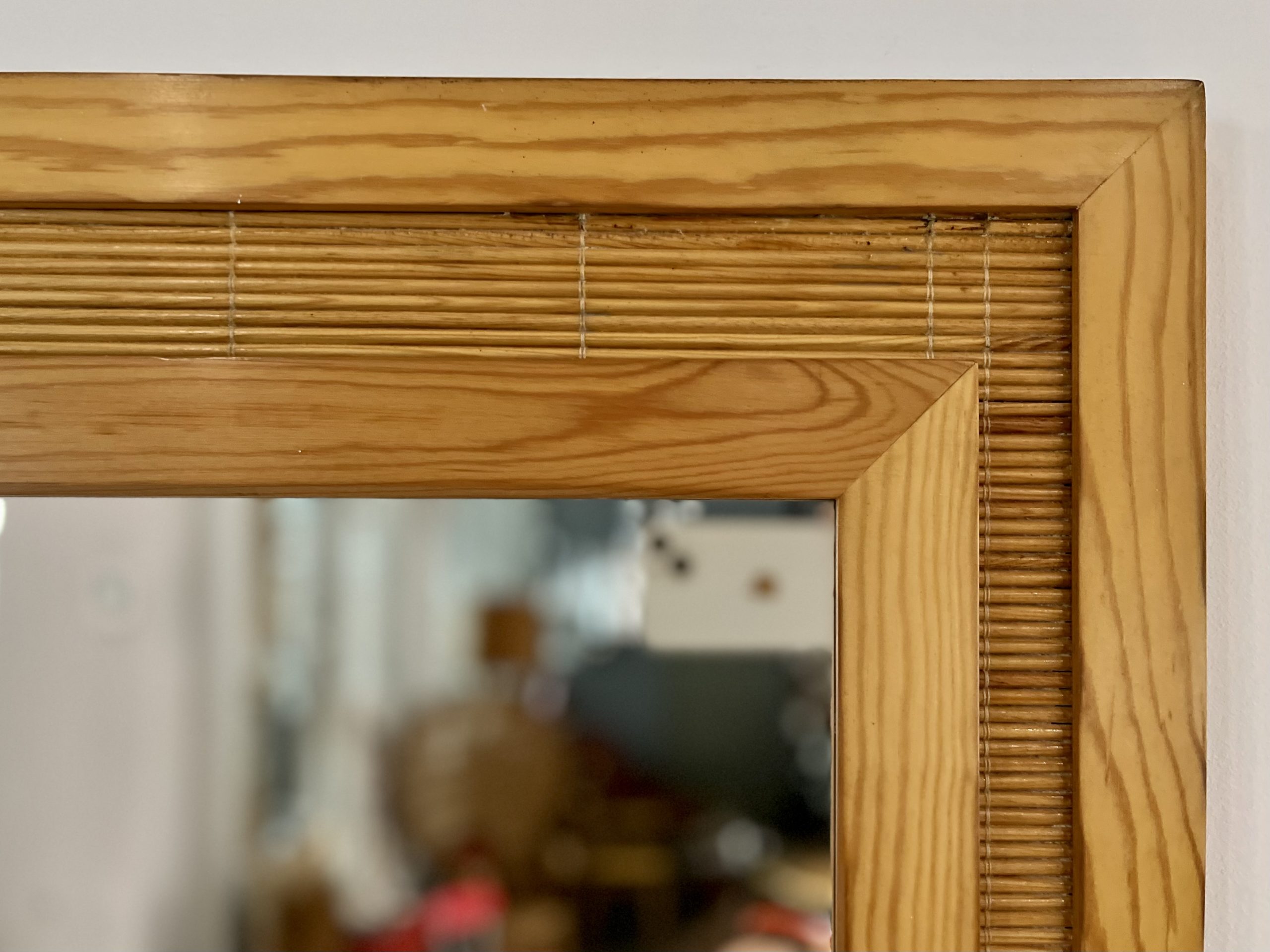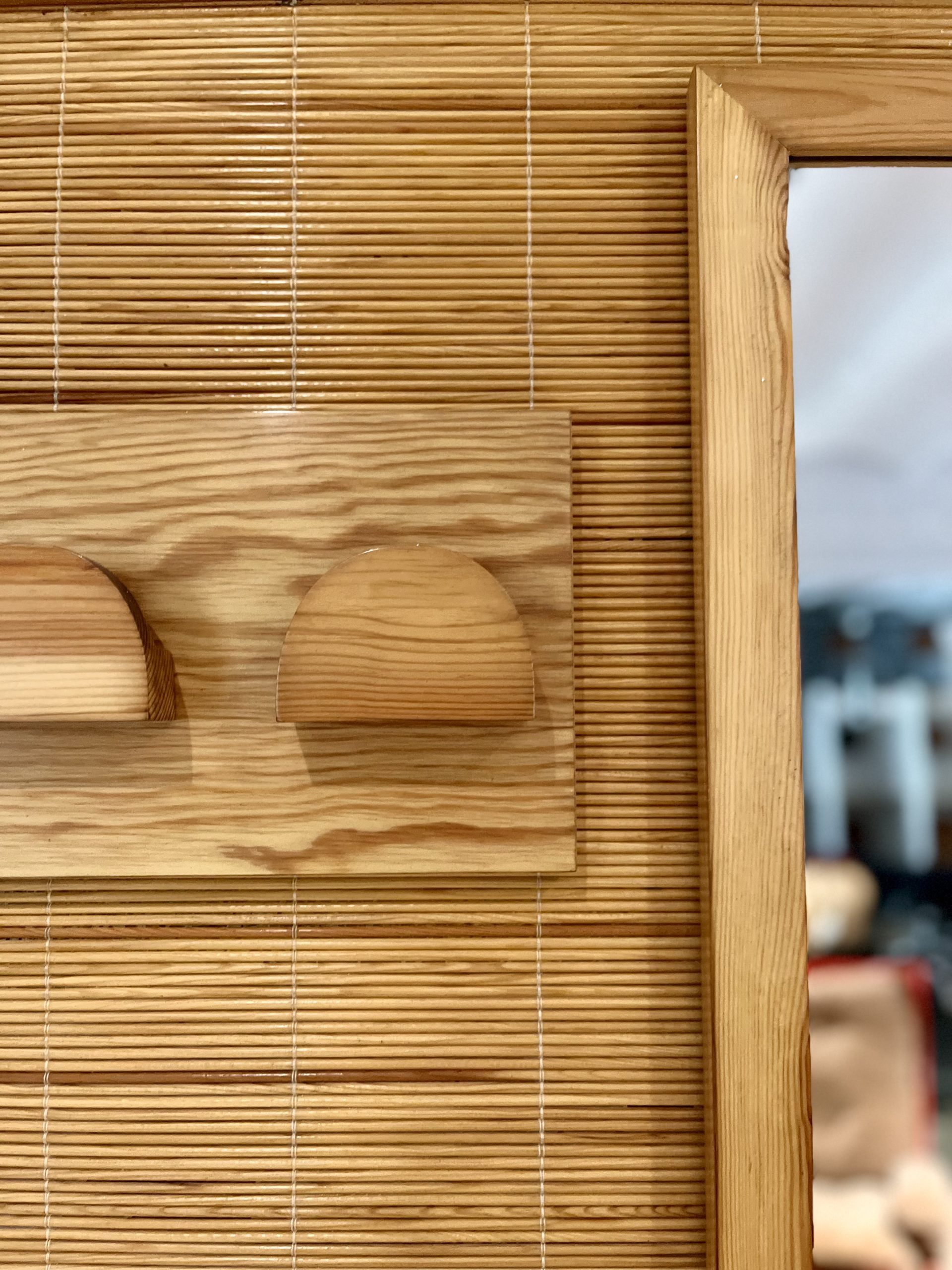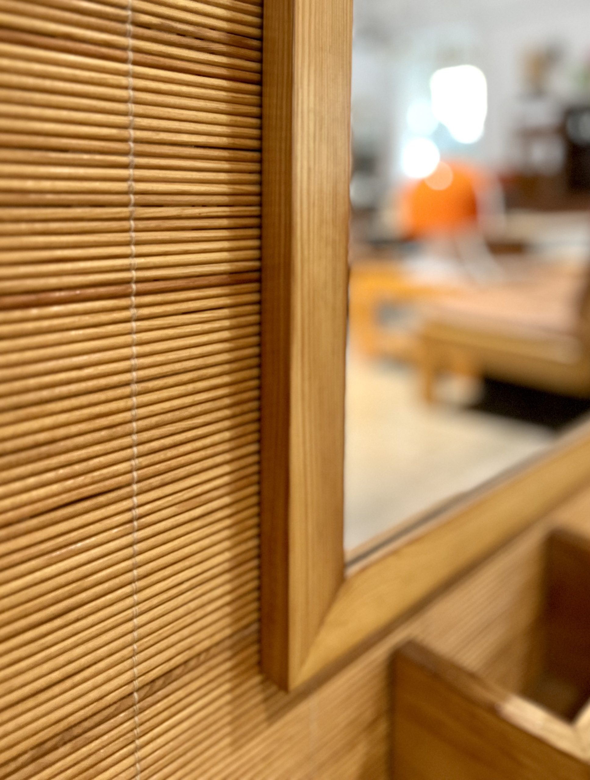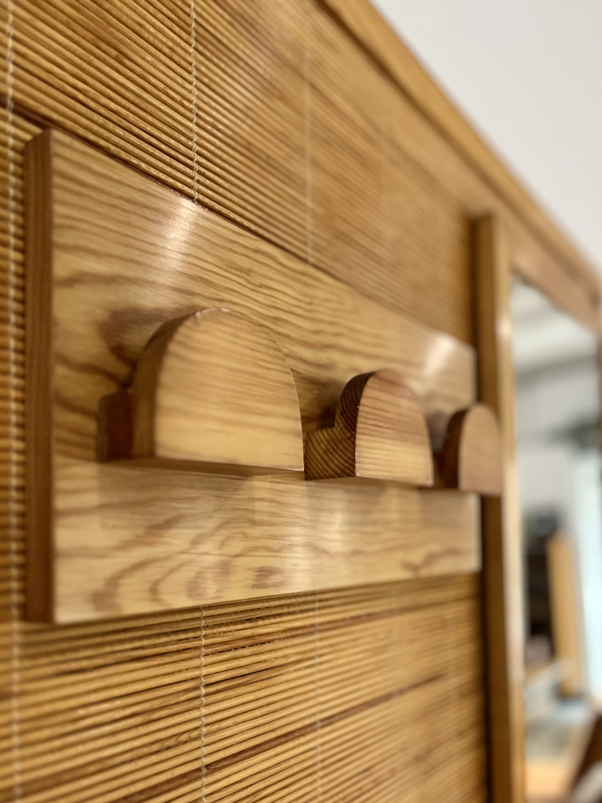 Perchero vintage con espejo, realizado de forma artesanal por carpintero local de Barcelona en los años 70. De estética moderna, con reminiscencias orientales, fue realizado con madera maciza de pino y tapizado con una trama en rollo de caña de calibre fino. Una pieza que no pasará desapercibida allí donde sea colocada, en entrada, descansillo, pasillo, vestidor… Búscale el lugar adecuado, dentro de tu hogar.