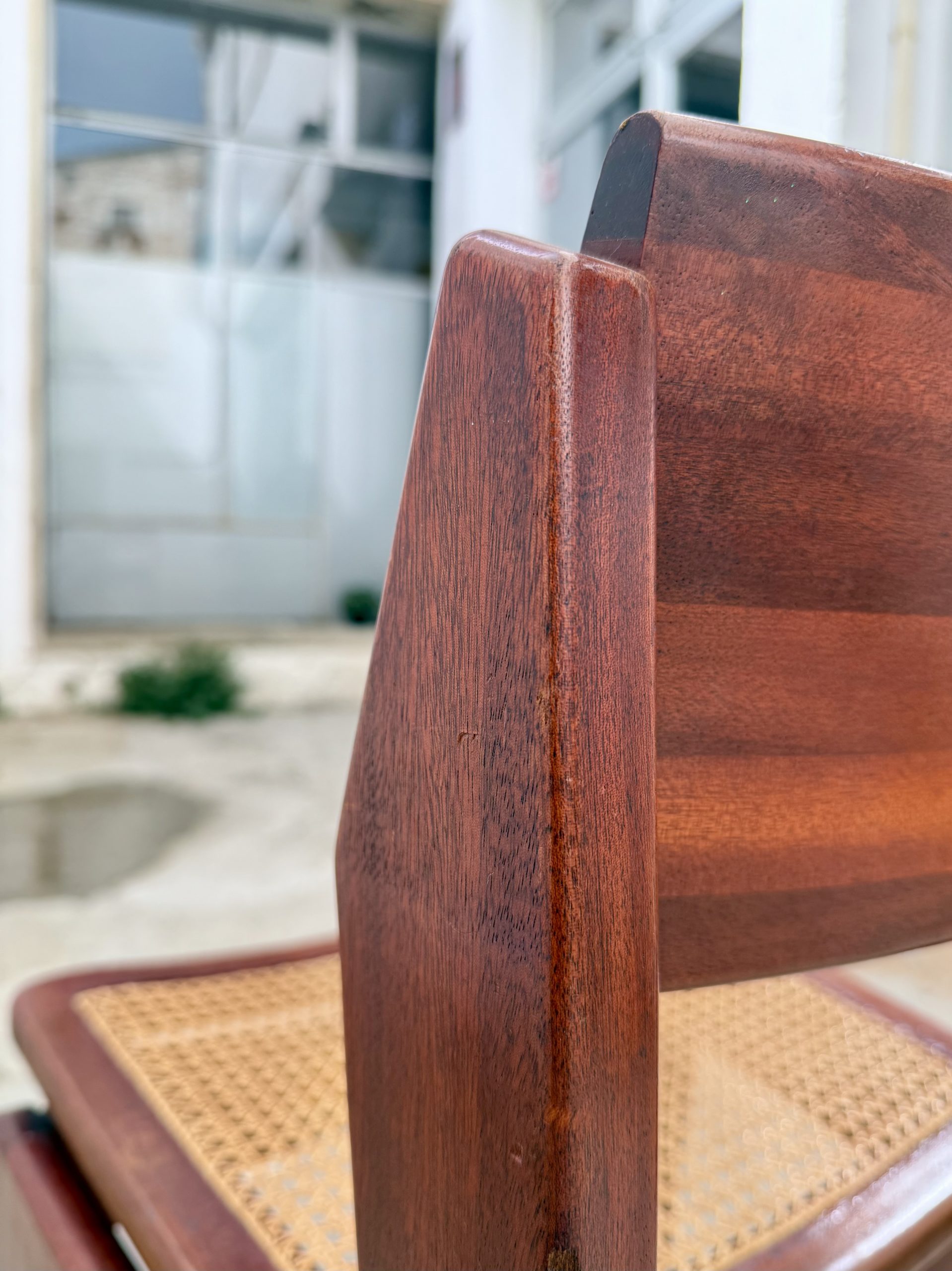 La silla Biok es un clásico del diseño español, obra del escultor abstracto Néstor Basterretxea. Fabricada en Irún en los años 60.  Hemos renovado la rejilla del asiento, tejida hebra a hebra. Trenzada a mano con fibras vegetales, se van entrelazando de forma artesanal, con la filosofía del trabajo bien hecho, donde la calidad prima ante la velocidad del acabado. Nuestros artesanos requieren más de 15 horas, para completar esta minuciosa labor.  En esta silla tan vanguardista, se percibe la influencia del diseño nórdico y de la estética japonesa.
