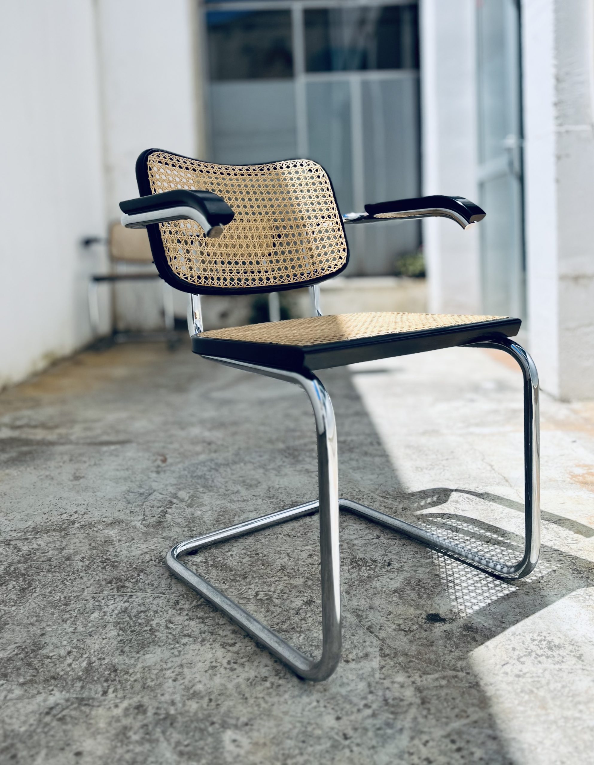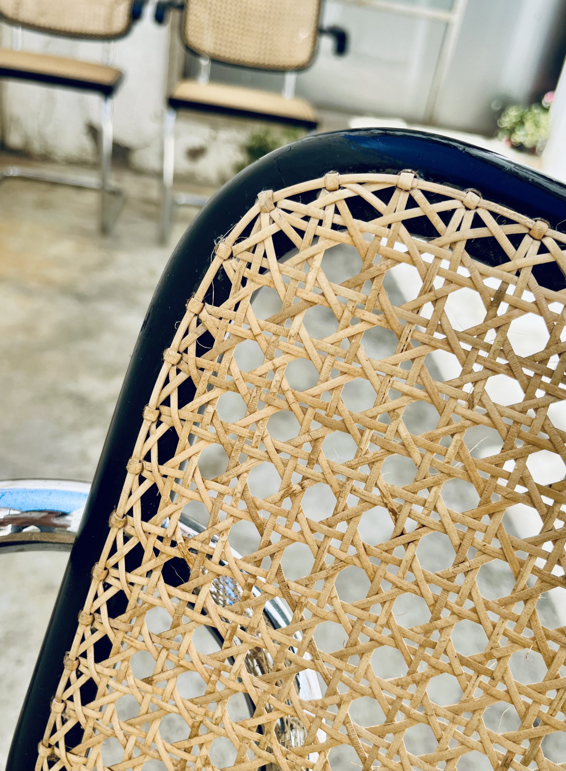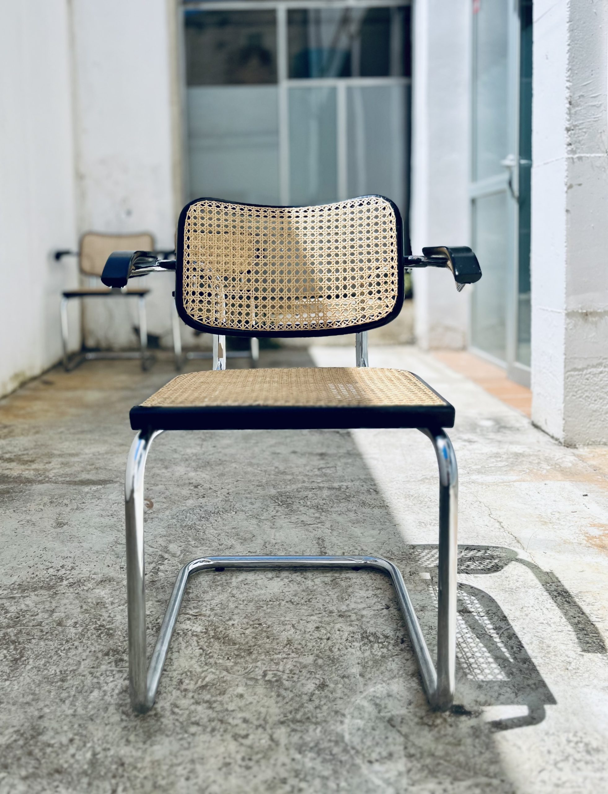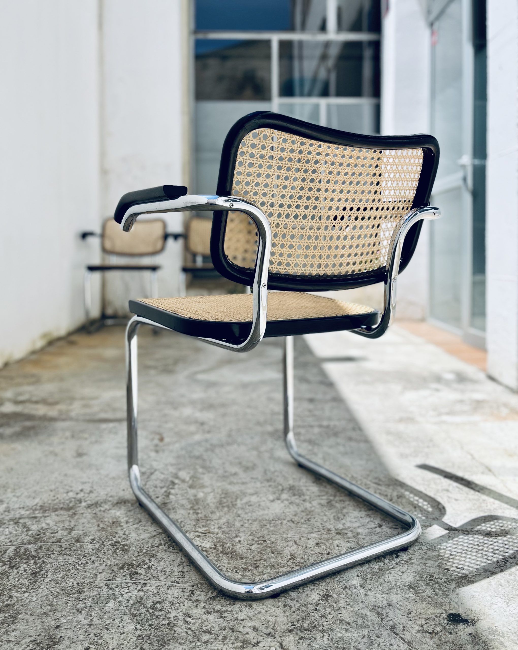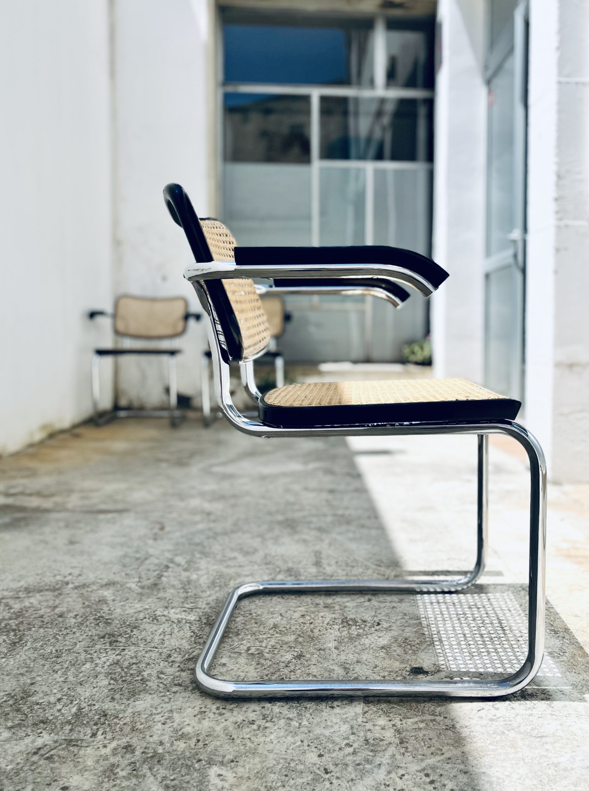 Estas sillas Cesca, diseño original de Marcel Breuer de 1.928, son de gran belleza y calidad, además de una rareza por su edición. Los tubos cromados son de una sola pieza (sin tapones a los extremos). El respaldo asemeja la forma de un corazón. Y la amplitud de sus dimensiones y la calidad de los materiales, la hacen inconfundible ante sus réplicas contemporáneas. Las rejillas trenzadas a mano con fibras vegetales, hebra a hebra, se van entrelazando de forma artesanal, con la filosofía del trabajo bien hecho, donde la calidad prima ante la velocidad del acabado. Nuestros artesanos requieren más de 20 horas por silla, para completar los bastidores de madera. Esta edición Gavina, sólo es comparable con la de Thonet o Knoll. Hechas en España, por la empresa MYC, en una década (los 60 y principio de los 70), que la fabricación de mobiliario de diseño internacional, estaba nacionalizada en nuestro país. Por este motivo, se trata de una rareza temporal, única e irrepetible. Adquirir estas edición, es formar parte de la historia de las sillas más icónicas del diseño. Y una inversión de futuro ya que seguirán revalorizándose con el tiempo.